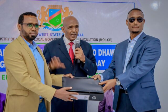 Jimco 24,Jan 2025 {CBB}Munaasabad uu xilka kula wareegaayey Godoomiyaha gobolka Baay mudane Cali wardheere ayaa maanta lagu qabtey magaalada Baydhabo ee xarunta gobolka Baay taas oo ay soo qabanqaabisay Wasaaradda Arrimaha Gudaha Dowladaha Hoose Iyo Dib-U-Heshiisiinta Dowlada koonfur galbeed Soomaaliya