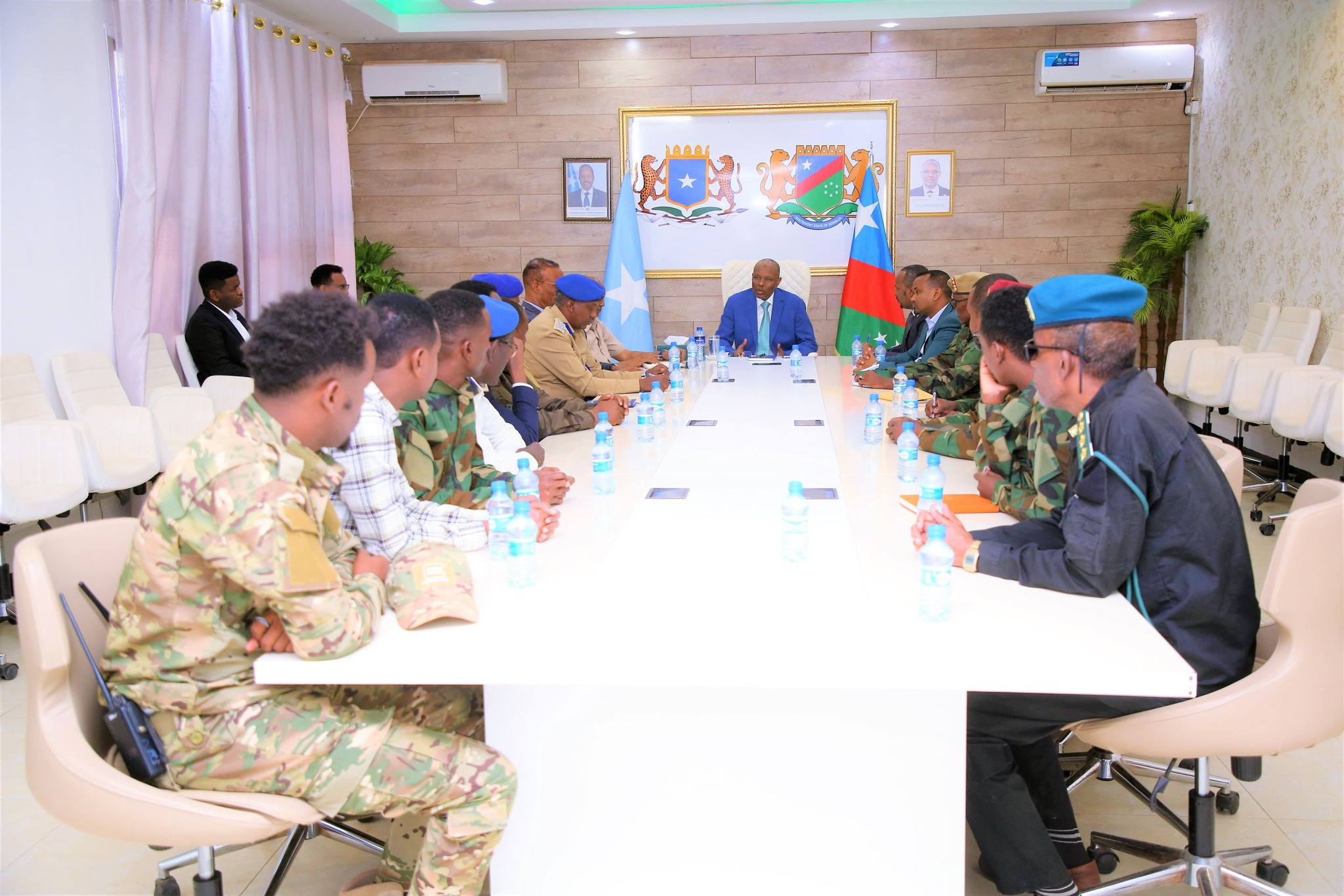 Sabti 01 Feb , 2025 {CBB}Madaxweynaha Dowladda Gobaleedka Koonfur Galbeed Mudane Cabdicasiis Xasan Maxamed Laftagareen ayaa guddoomiyey Shirka Golaha Amniga Koonfur Galbeed oo looga hadlay Istiraatijiyada Xoojinta Amniga Deeganada Koonfur Galbeed iyo ka Hortaga Dhagaraha Alshabab ay ku dhibaateeyaan Shacabka Soomaaliyeed.