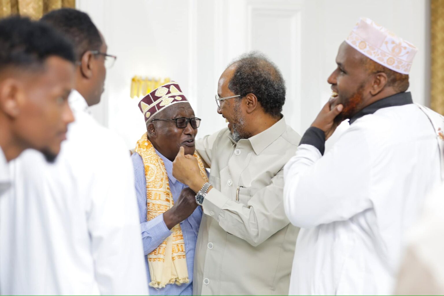 Isniin 9, March 2025 {CBB} Madaxweynaha Jamhuuriyadda Federaalka Soomaaliya Mudane Xasan Sheekh Maxamuud ayaa Madaxtooyada Qaranka kulan afur ah kula qaatay culimada Soomaaliyeed, isaga oo la wadaagay muhiimadda isku xirnaanta culimada, shacabka iyo dowladda oo laf-dhabar u ah qarannimada Soomaaliya.