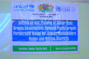 Jimco 02, May 2025 {CBB} – Wasaaradda Tamarta iyo Khayraadka Biyaha ee Dowladda Gobaleedka Koonfur Galbeed Soomaaliya, oo kaashaneysa UNICEF iyo Sanduuqa Gurmadka Degdegga ah ee Qaramada Midoobay (CERF), ayaa magaalada Xuduree Gobolka Bakool ka daah furtay tababar ku saabsan dhisidda iyo tababarka Ururada/bulshooyinka isticmaala biyaha