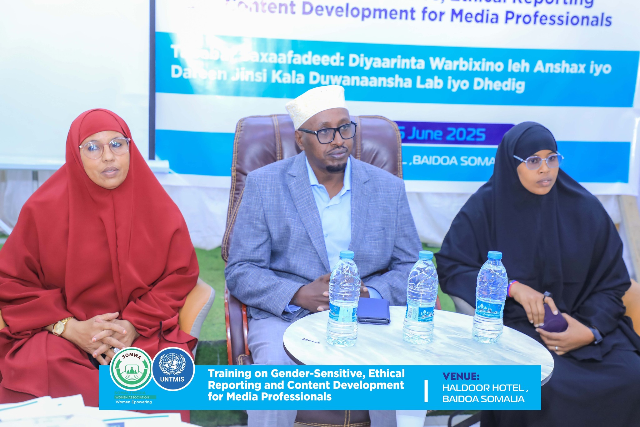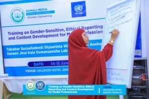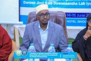Axad 15 June 2025 {CBB}Tababar lagu baranaayey diyaarinta warbixinada Anshaxaha iyo dareen jinsi kala duwanaashaha lab iyo dhadiga ayaa waxaa magalada baydhabo looga daahfurey ku dhowaad 30 wariya oo isuga rag iyo dumar oo ka shaqeeya xaruumaha warbaaxinada ee magalada baydhabo.