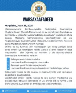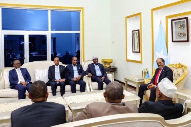Arbaco 25 June 2025 {CBB}Madaxweynaha Soomaaliya,Xasan Sheekh Maxamuud, ayaa maanta kulan ku yeeshay Madaxtooyada Qaranka isaga oo la shiray Golaha Samatabixinta Soomaaliyeed, kaas oo ay ku mideysan yihiin Madaxweynayaashii hore ee dalka.