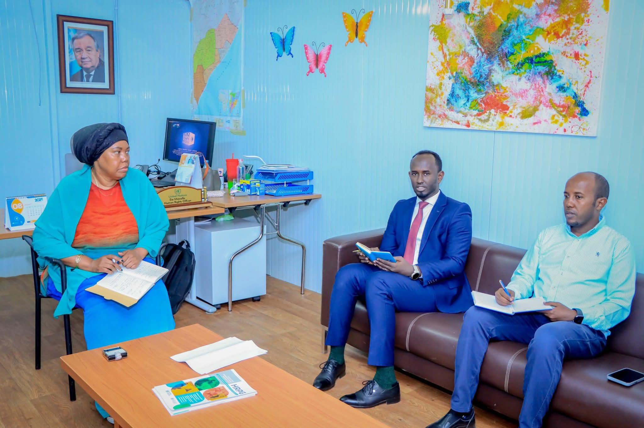 Talaado 29 July 2025 {CBB}Wasiir kuxigeenka Wasaaradda Horumarinta Reer Miyiga iyo Adkeysiga Dowladda Gobaleedka Koonfur Galbeed Soomaaliya Abdulkadir Ibrahim Abdullahi {Ibrou} ayaa maanta kulan miro-dhal ah la yeeshay Wakiilka Xafiiska Xuquuqda Aadanaha ee Qaramada Midoobay (UN Human Rights Officer) ee ka howlgala Koonfur Galbeed Ms. Sia Muwalla.
