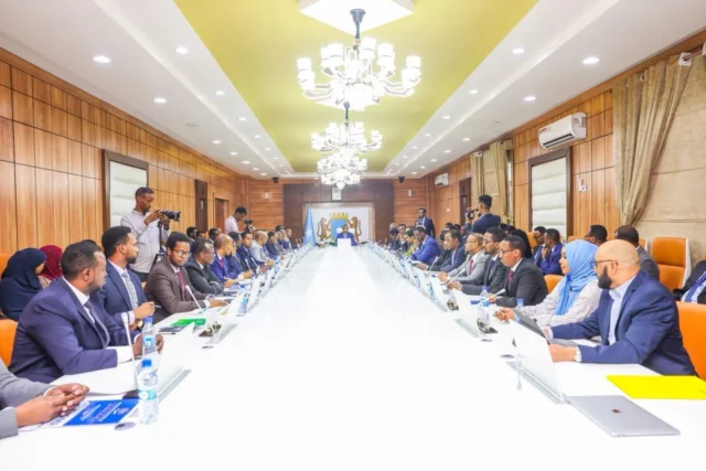 Talaado, 19 Aug 2025 {CBB}Ra’iisul Wasaaraha Xukuumadda Jamhuuriyadda Federaalka Soomaaliya, Mudane Xamsa Cabdi Barre, oo ku guda jira barnaamijka la-xisaabtanka Xukuumaddiisa, ayaa maanta su’aallo ka weydiiyey wasaaradaha kala ah, Arrimaha Gudaha Federaalka iyo Dib-u-heshiisiinta, Arrimaha Dibadda iyo Iskaashiga Caalamiga ah, Amniga Gudaha, Gaashaandhigga, Cadaaladda iyo Arrimaha Dastuurka, Deegaanka iyo Isbeddelka Cimillada, isaga oo dul istaagay waxyaabaha uga hirgalay qorshaha wax-qabadka sannadlaha ah ee Xukuumadda.