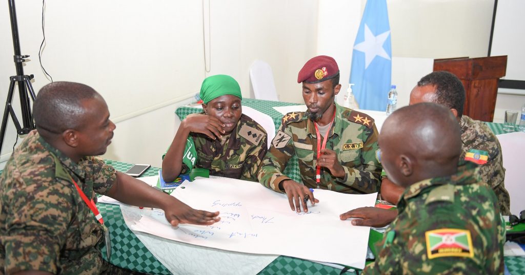 Qaramada Midoobay oo Howlgalka Midowga Afrika ee AUSSOM taageerta ayaa tababar joogta ah siisa qaybaha kala duwan uu ka kooban yahay howlgalkaan, waxyaabaha inta badan la baro waxaa kamid ah qaabka ay isku difaacayaan iyo sida looga hortago xadgudub ka dhici kara.