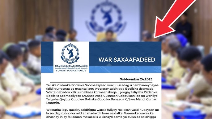 khamis, 25 Sep 2025 {CBB}Taliska Ciidanka Booliska Soomaaliyeed ayaa faahfaahin dheeraad ah ka bixiyay dhacdadii Saldhiga Warta Nabadda ee dhexmartay Ciidamada Amniga iyo Askarta taabacsan Xubnaha Mucaaradka.