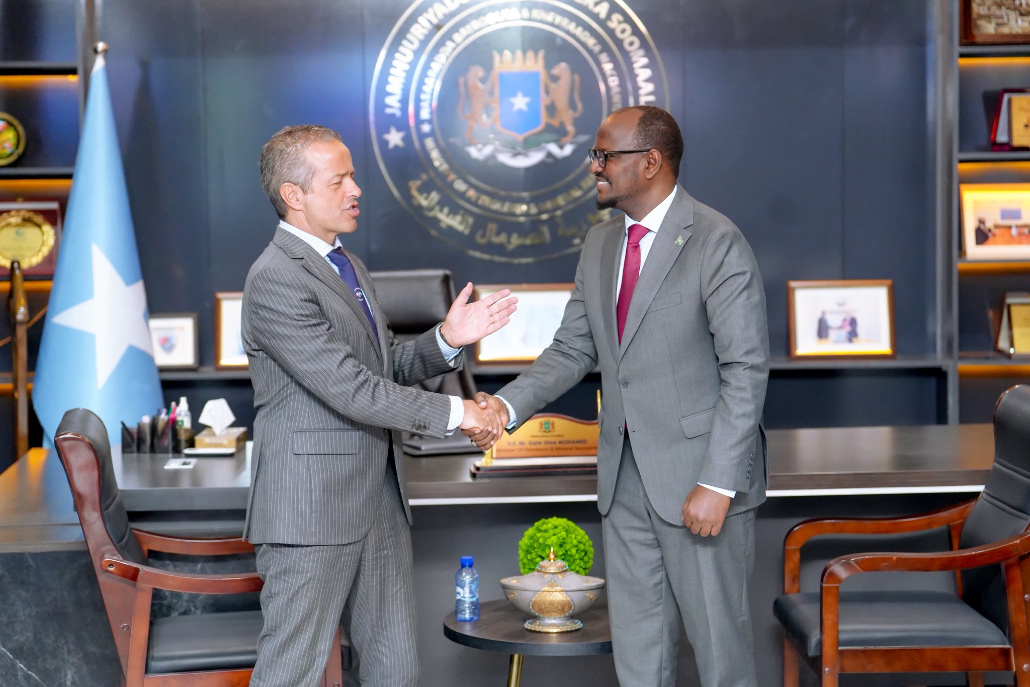 Talaado November 18, 2025 {CBB}Wasiirka Batroolka iyo Kheyraadka Macdanta ee Dowladda Federaalka Soomaaliya, Daahir Shire, ayaa maanta kulan gaar ah la yeeshay Safiirka Talyaaniga ee Soomaaliya, Pier Mario Daccò Coppi.