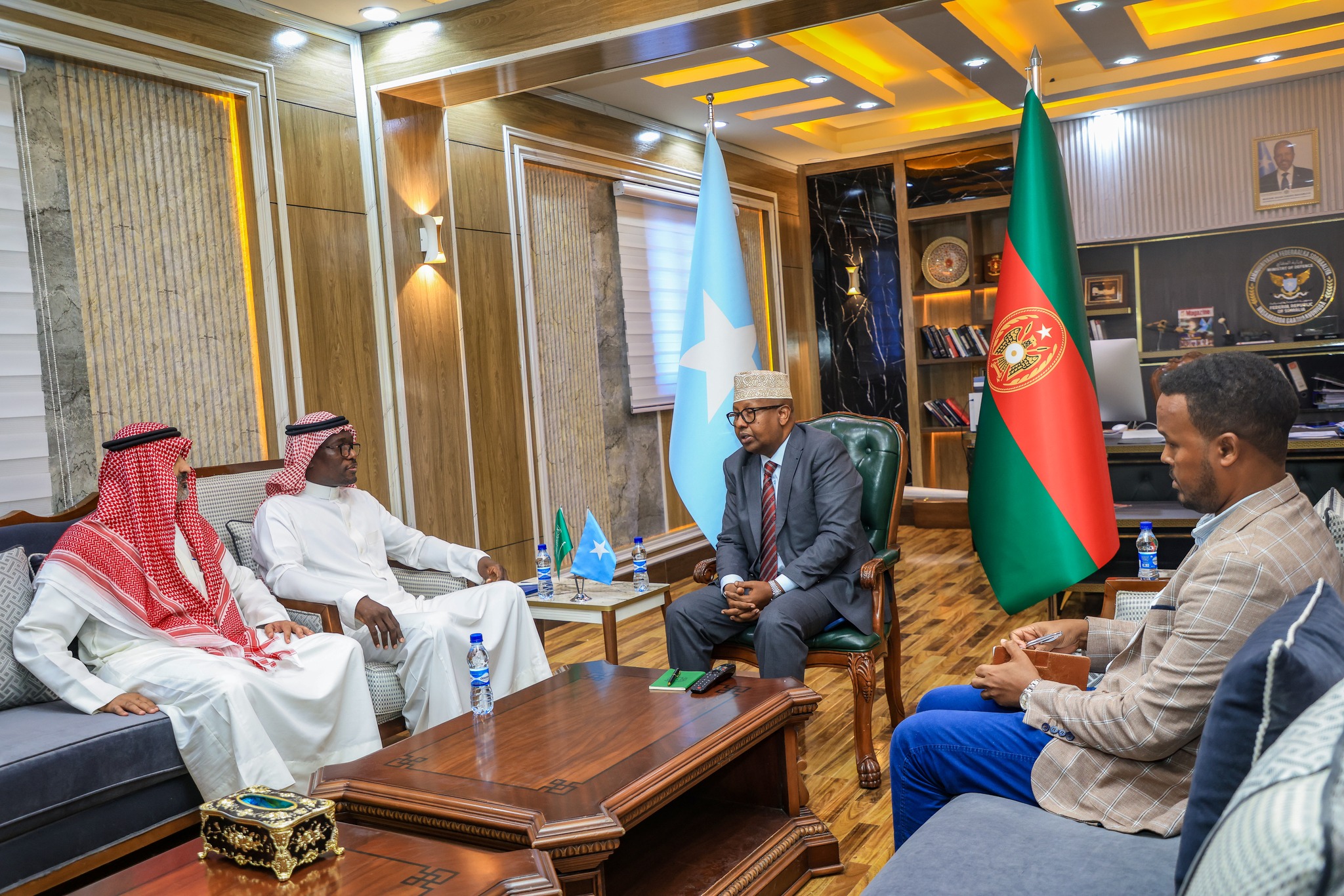Safiirka Boqortooyada Sacuudi Carabiya ee Soomaaliya, Axmed Bin Maxamed Al-Muwallad ayaa dhankiisa uga mahaceliyay Wasiirka Gaashaandhigga ee Jamhuuriyadda Federaalka Soomaaliya, Axmed Macallin Fiqi soo dhaweentiisa ee Xafiiska.