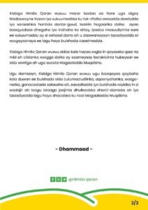 Xisbiga Himilo Qaran wuxuu sheegay inuu ka war-helay in shaqsiyaad heysta ogolaansho ka yimid Madaxweynaha Soomaaliya, Xasan Sheekh Maxamuud, ay ku howlan yihiin dhulboob hor leh oo ka dhacay meelo ka baxsan goobihii ay deganaayeen shacabka.
