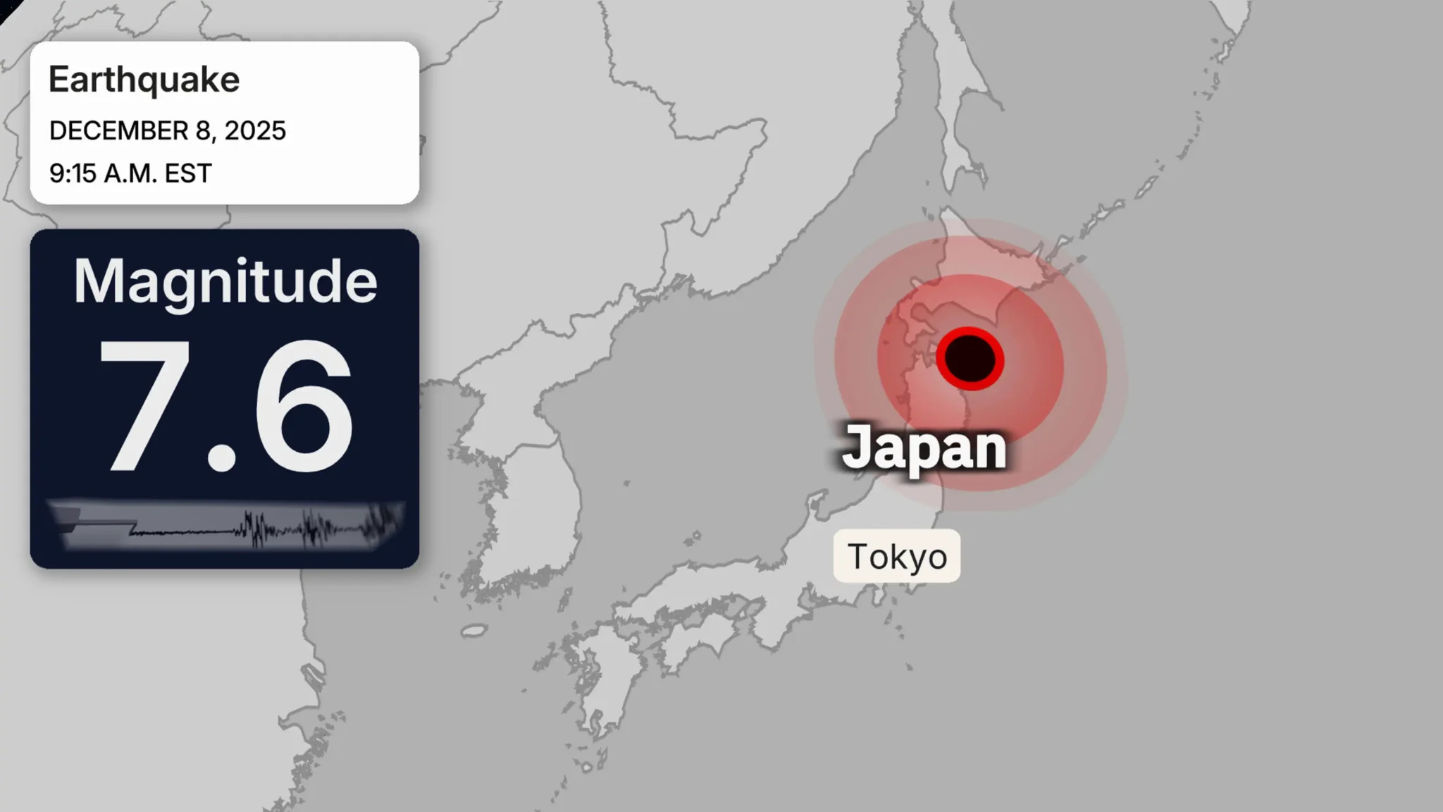 Talaado, 9 Dec 2025 {CBB}Dhul-gariir cabirkiisa lagu sheegay 7.5 Magnitude ayaa ku dhuftay Dalka Japan gaar ahaan Waqooyi bari, waxaana la xaqiijiyay in ay ku dhaawacmeen in ka badan 30 qof, weli lama soo gudbin xog la xiriirta dhimasho.