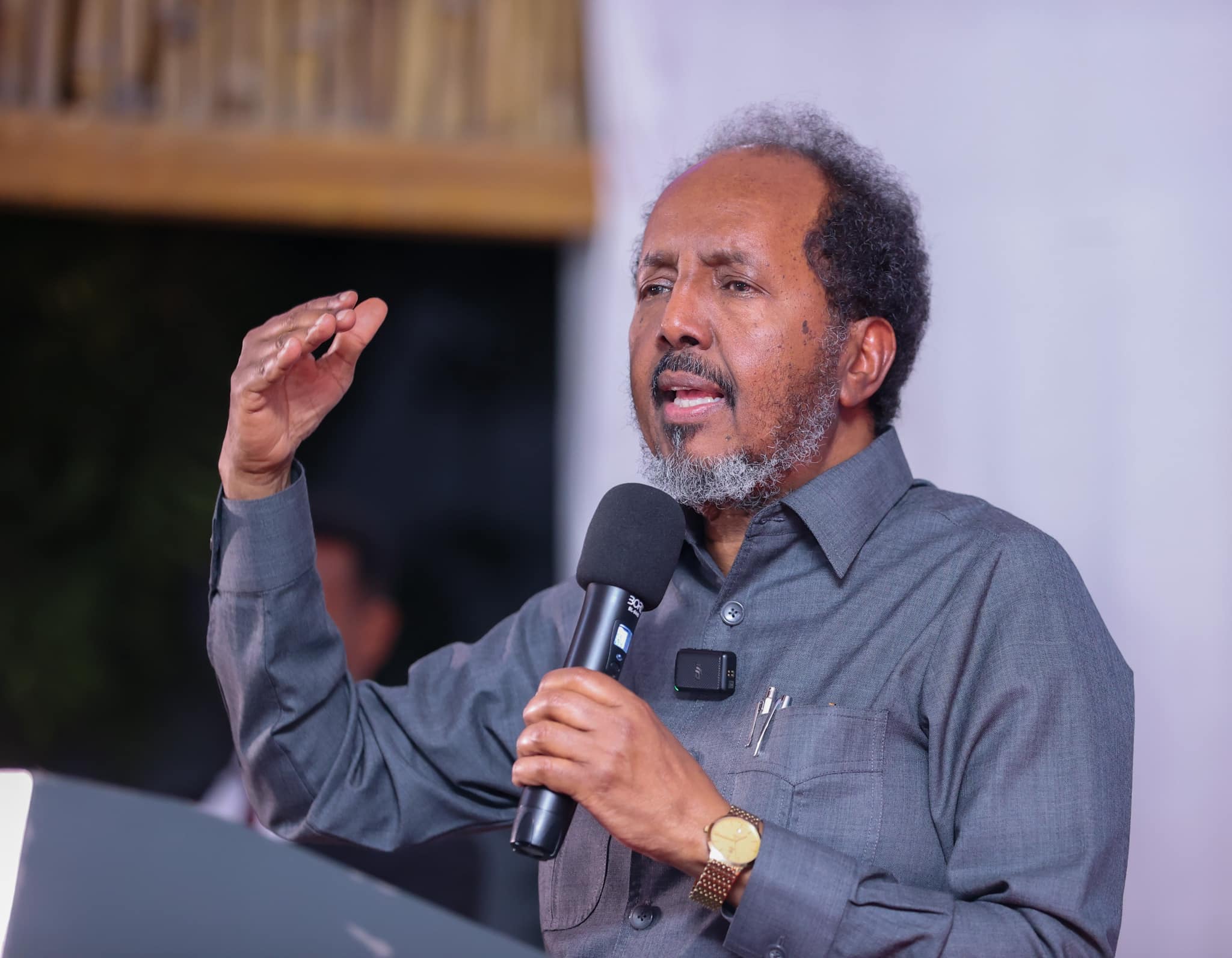Madaxweyne Xasan Sheekh Maxamuud ayaa dhiggiisa Jamhuuriyadda Jabuuti, Ismaaciil Cumar Geelle kala hadlaya sidii Dowladdiisa ay u xoojin lahayd garab istaagga la xiriira difaaca midnimada si Dadka Soomaaliyeed la isugu hayo.