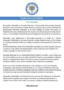 Talaado 27 Jan 2026 {CBB}Dowladda Soomaaliya ayaa faahfaahin dheeraad ah ka bixisay wadatashiyada shacabka iyo maamul dalka lagala sameeyay wax ka badalka Dastuurka dalka.
