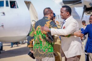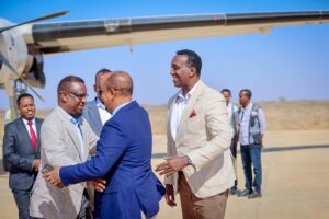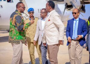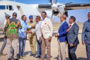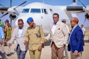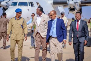 Talaado 3 Feb 2026 {CBB}Guddoomiyaha Guddiga Doorashooyinka Madaxa-bannaan iyo Xuduudaha Qaranka, Mudane Cabdikariin Axmed Xasan, oo ay wehliyaan Komishin Mudane Yuusuf Cabduqaadir Maxamed iyo Xoghayaha Guddiga Mudane Xuseen Nuunow Cali, ayaa maanta si rasmi ah ugu soo dagay magaalada Baydhabo, xarunta KMG ah ee Dowladda Koonfur Galbeed Soomaaliya.