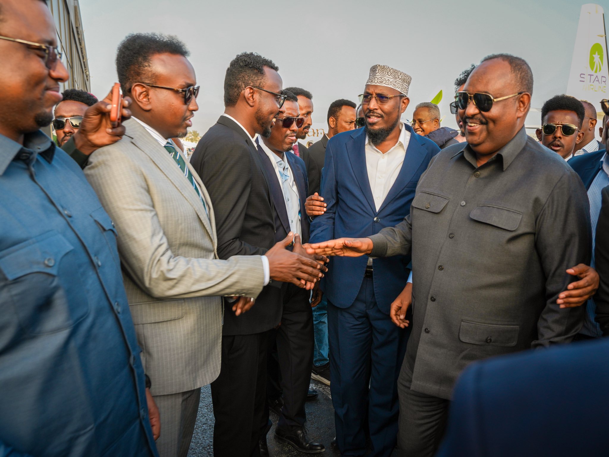 Mas’uuliyiin ka tirsan golayaasha kala duwan ee dowladda iyo qeybaha kala duwan ee bulshada ayaa Madaxweynaha kusoo dhaweeyay Garoonka Diyaaradaha Aadan Cadde ee Magaalada Muqdisho.