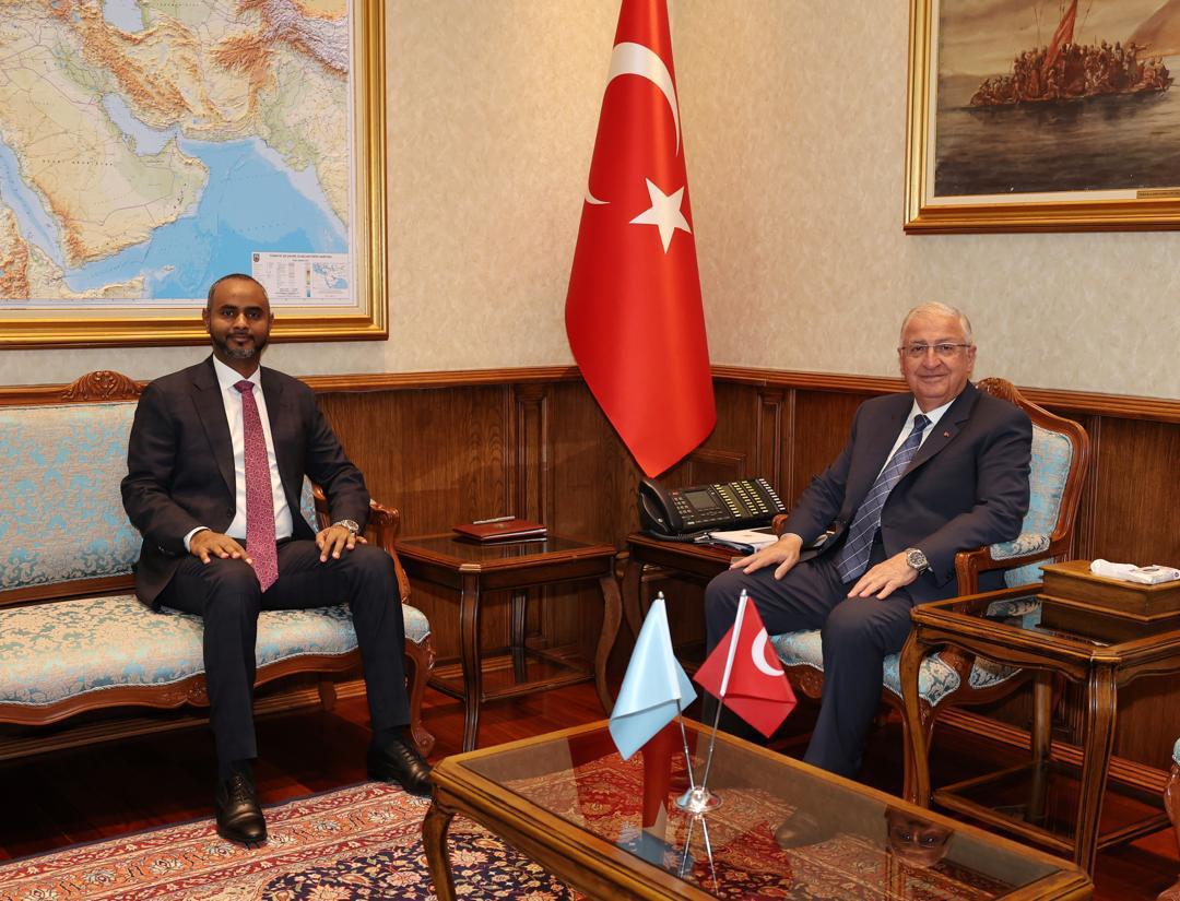 Talaado 03, Sept 2024 {CBB}Magaalada Ankara Dalka Turkiga waxaa kulan gaar ah ku yeeshay Wasiirka Gaashaandhigga Jamhuuriyadda Federaalka Soomaaliya Cabdulqaadir Maxamed Nuur Jaamac & Dhiggiisa Yaşar Güler iyaga oo kawada hadlay xoojinta Iskaashiga Difaaca iyo Amniga.